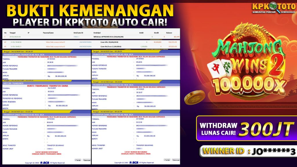 Bukti Kemenangan 24 OKTOBER 2025 Di PRAGMATIC PLAY MAHJONG WINS 2 WD 300 Juta
